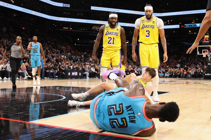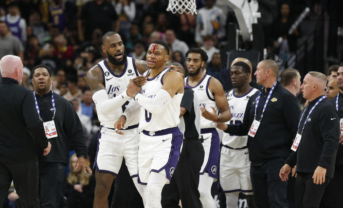 San Antonio Spurs forward Zach Collins was ejected from their 143-138 loss to the Los Angeles Lakers...