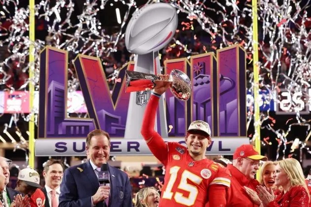LAS VEGAS — Patrick Mahomes still had his jersey on from Super Bowl LVIII when he brought up next ...