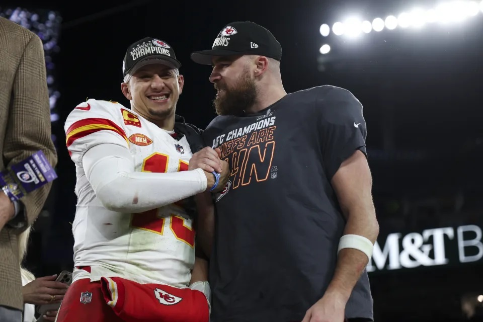 BALTIMORE — Travis Kelce dismounted the trophy ceremony stage and reunited with Taylor Swift.“Fa...